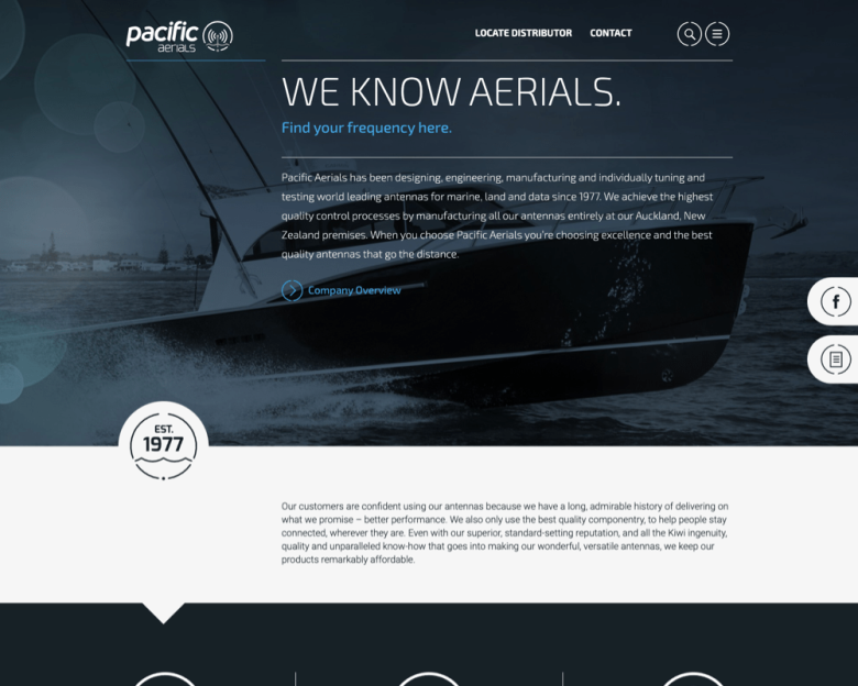 Pacific Aerials has been designing and manufacturing world leading antennas for marine, land and data since 1977.