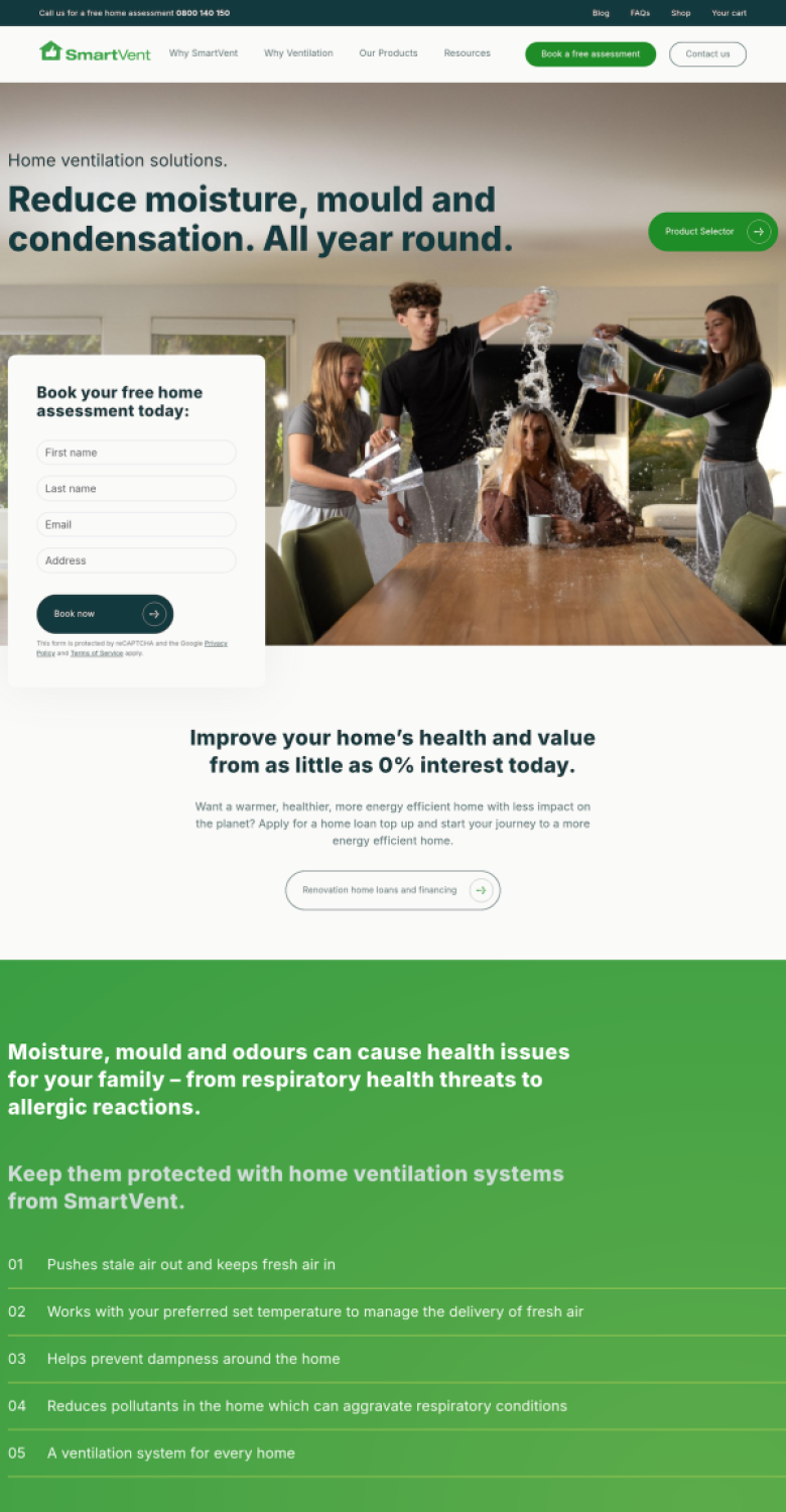 Working with the team at SmartVent and digital media agency Smart Media, I developed this new ecommerce site for the experts in continuous home ventilation.