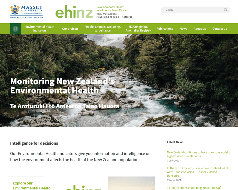 EHINZ monitors and reports on how the environment affects the health of the NZ human and animal populations. I worked with EHINZ to redevelop their site.
